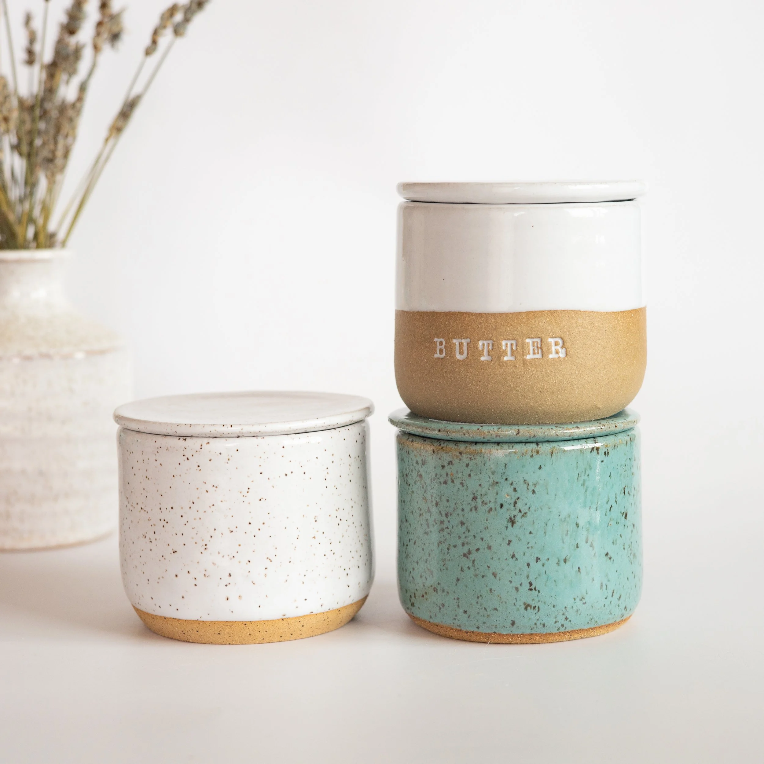Organize your kitchen in style with this handmade ceramic utensil holder and French butter keeper gift set. This charming duo is both practical and beautiful, making it the perfect addition to any kitchen.